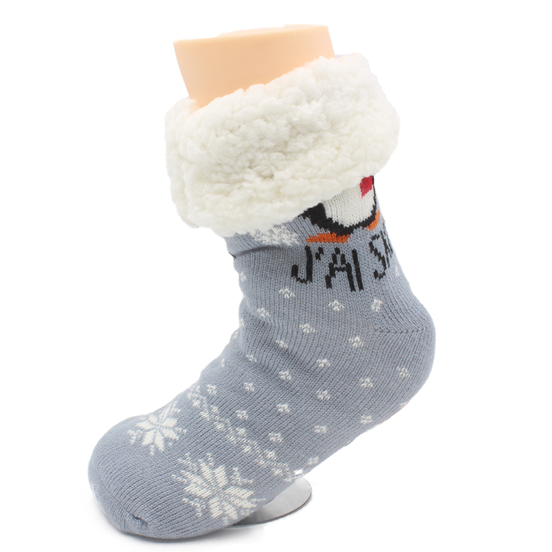 Christmas slipper socks knitted outer with rubber sole grips